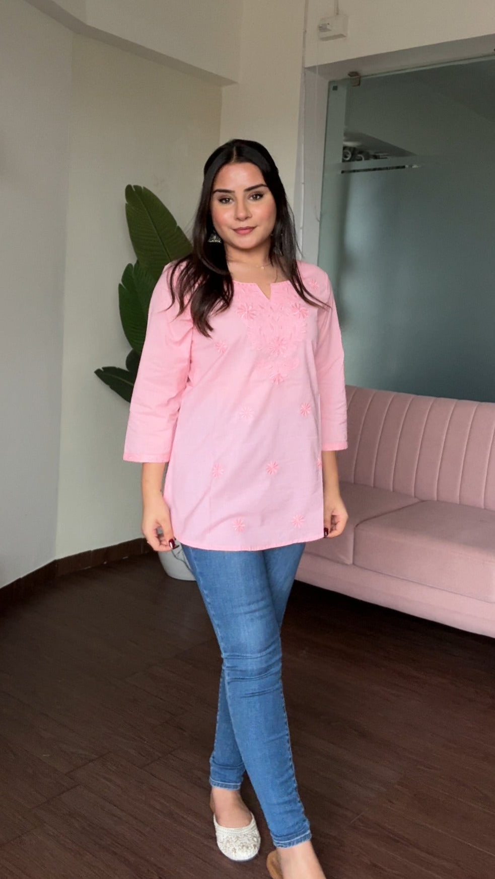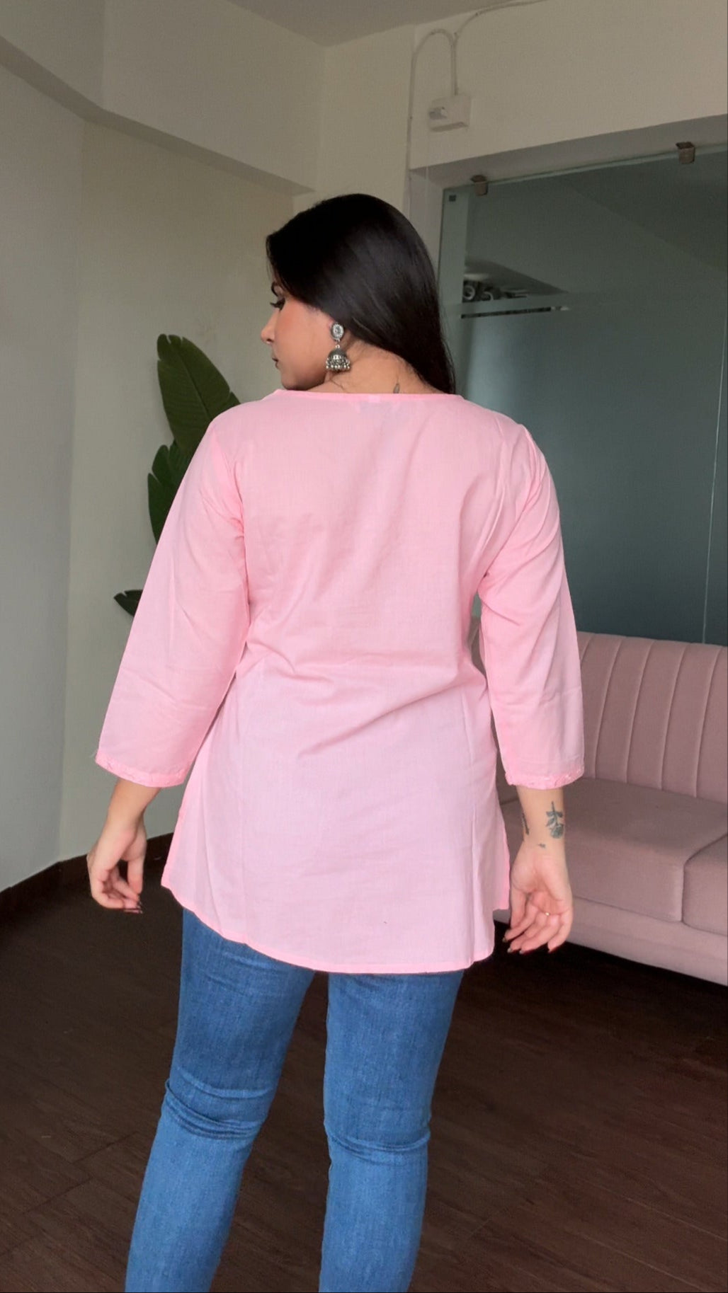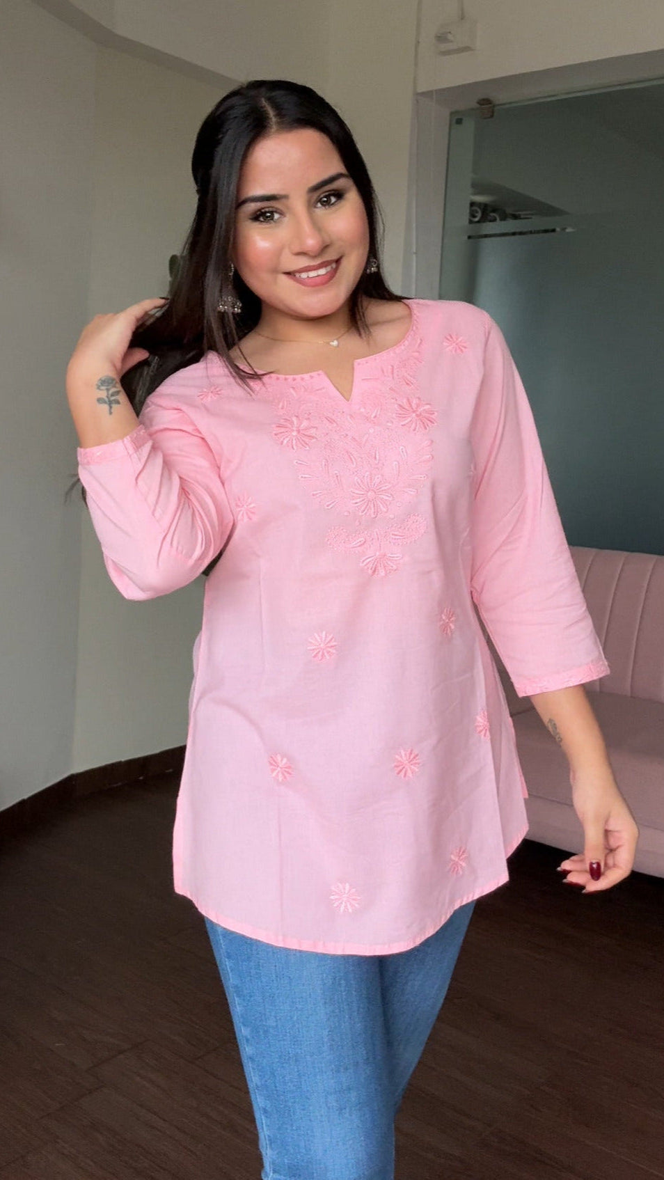 Chikankari Solid Monochrome Embroidery Short Kurti